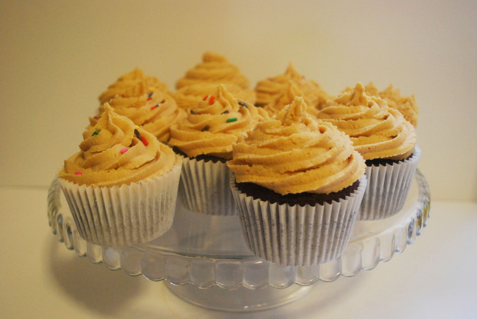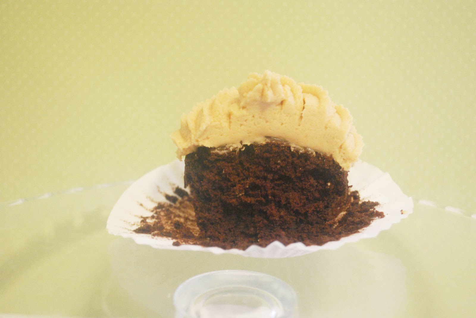 The idea to make these cupcakes was quite a spontaneous one, I knew I just had to incorporate my Italian goodies into a baked treat pretty damn soon, and what better day for baking to fall on but a rainy, miserable English Sunday? Provided that it was a successful bake, these cupcakes were destined to taste great. Simply because it is a universally known fact that chocolate and peanut butter are a match made in heaven, please eat a Reese's peanut butter cup before you objectify! I adapted Nigella Lawson's Devil's Food Cake recipe for the sponge, and whipped up my very own peanut buttercream for the topping, please be warned that it is VERY heavy on the palette.