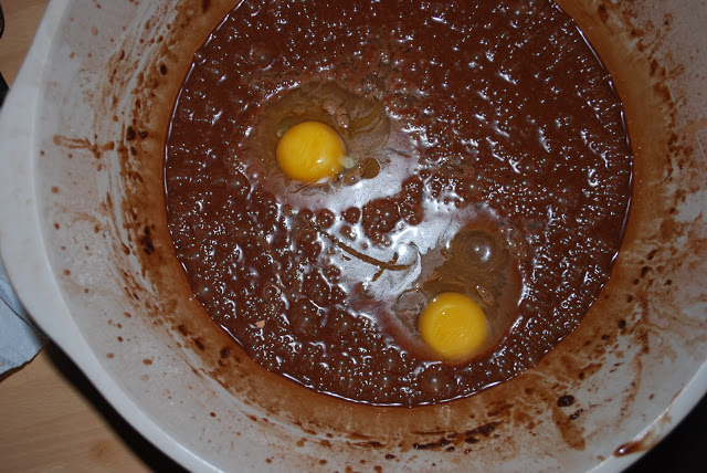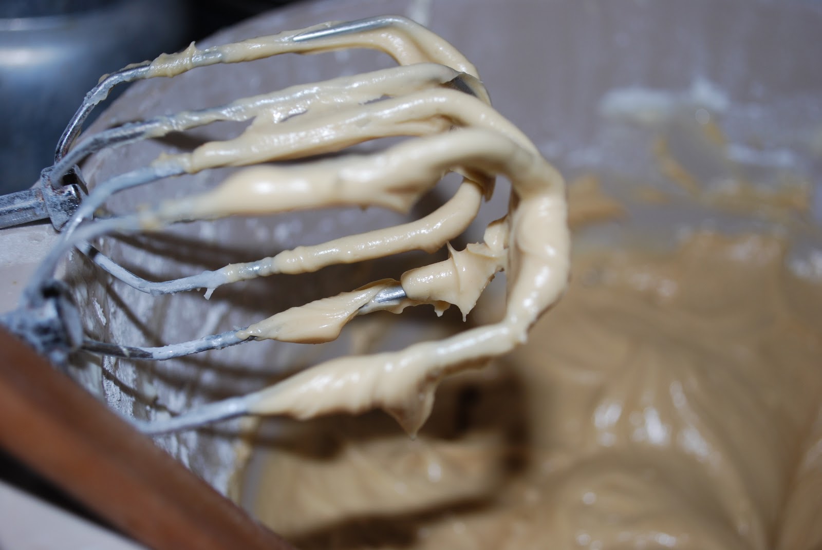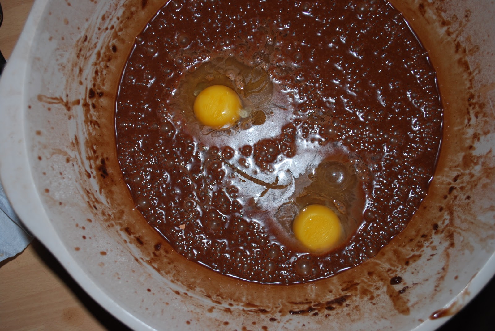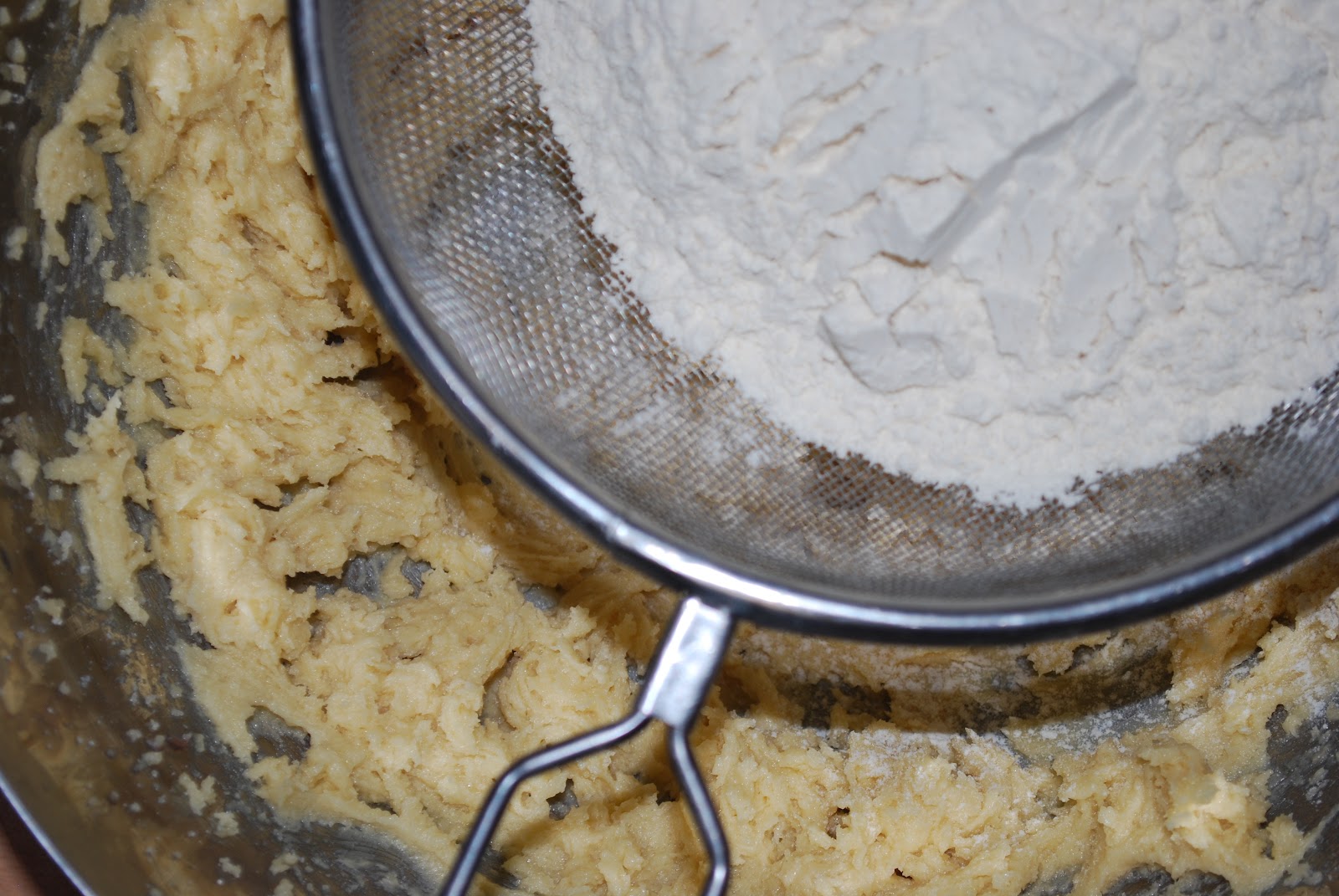 - Reducing your speed, add the eggs one at a time till you have a pale mixture.