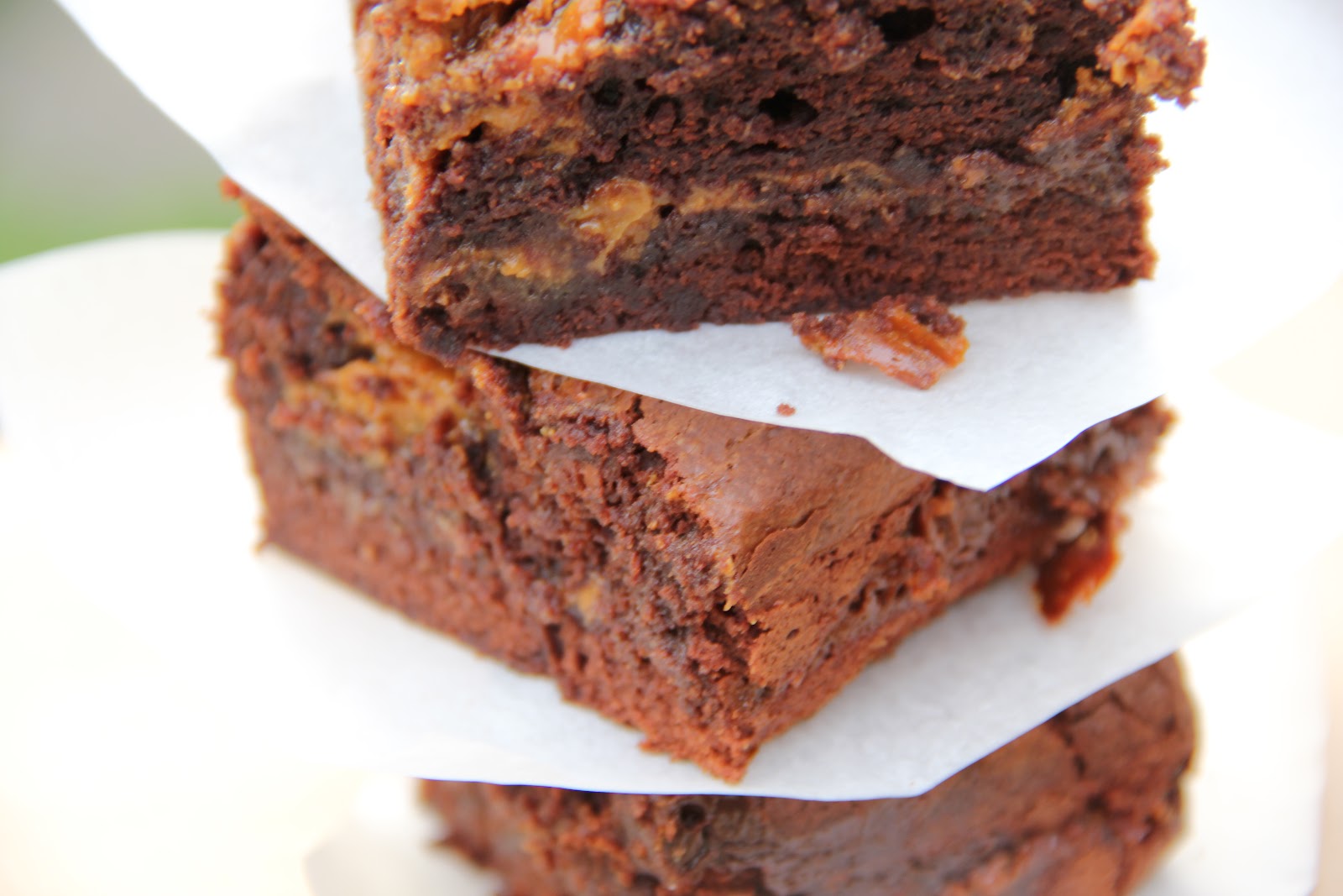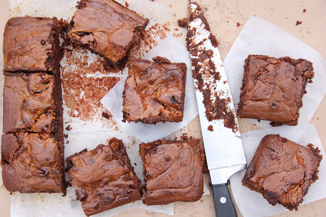 Chocolate and dulce de leche. If there were a heaven, it would be made up of exactly these two components. Unless you're a savory fan, then aubergine it is. The great thing about these brownies was their cakey texture, but don't get me wrong I love a fudgey brownie. But I was grateful for the fluffiness this time around as it coupled perfectly with the goeey chewy caramel swirled around all and every corner and crevice this calorific devil had to offer.