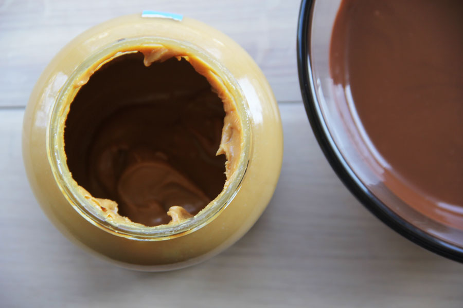 Melt the chocolate over a ban merie. The buckeye filling will last in the fridge for 3 days so you can always wrap it in cling film and come back to it when you're ready.