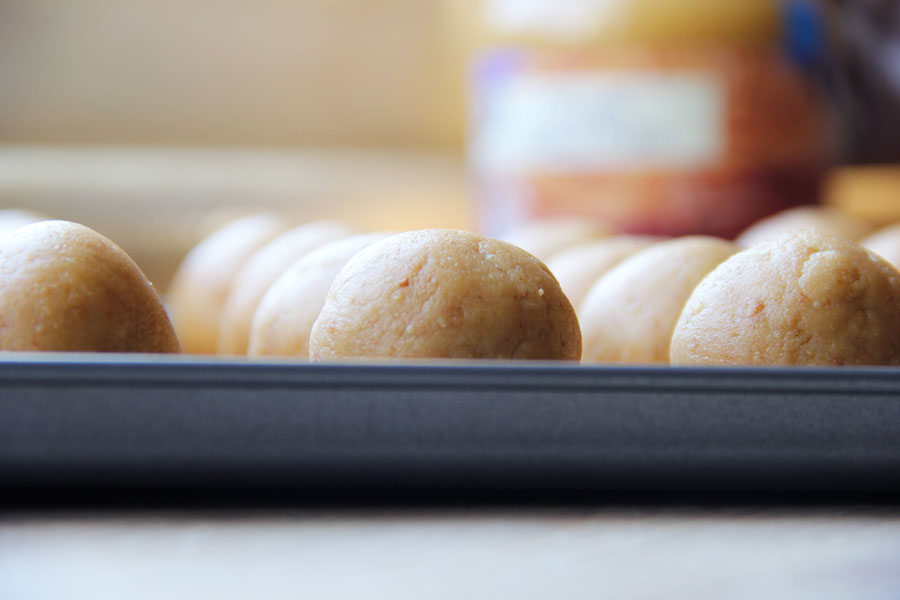 With each piece of half "buck", stretch out both your palms with the dough in the middle and gently roll it around until eventually, you have a round ball. Do this until you have no dough left and put in the fridge to set for at least 20 minutes.