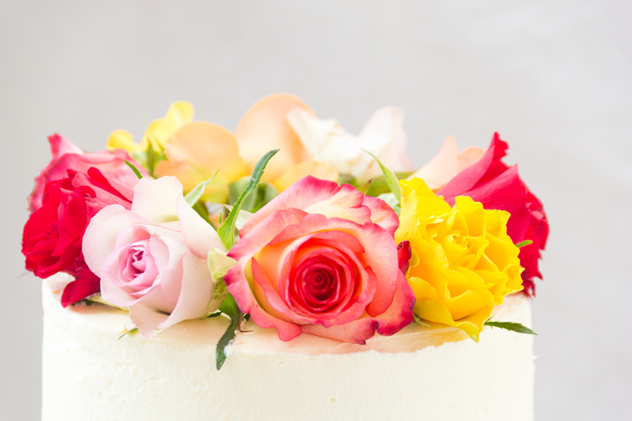 - A bunch of pretty roses: I used roses on the cake purely for decoration. If you wanted, though, you could make them edible by crystallising with egg whites and sugar.